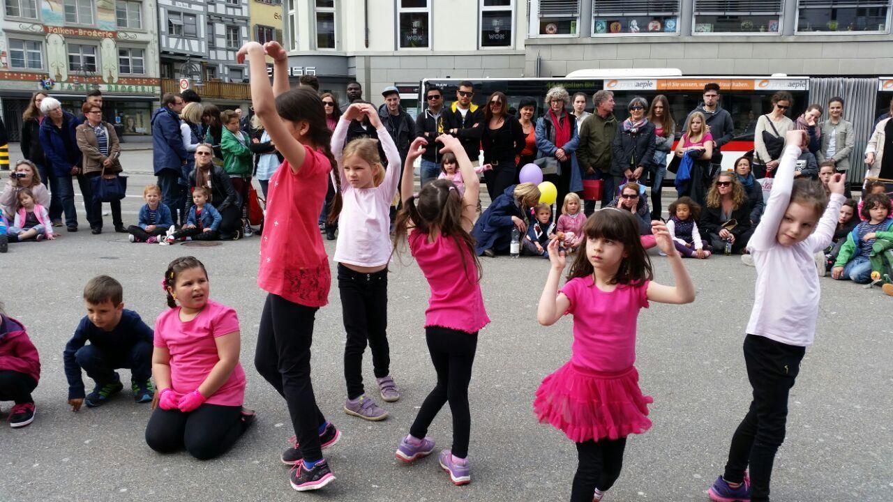 Meine Ballett- und Kindertanzgruppe beim Tanzrauschen vom 6. Mai 2017 in der Stadt St. Gallen.